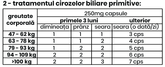 COMPOZIȚIE/cps: Acid ursodeoxicolic - 250 mg, Amidon de porumb, Stearat de magneziu.